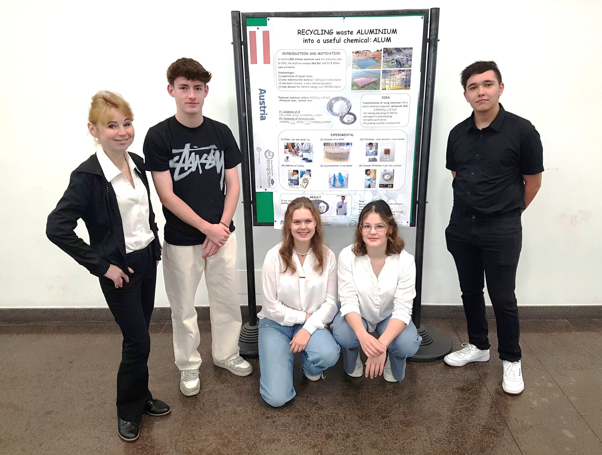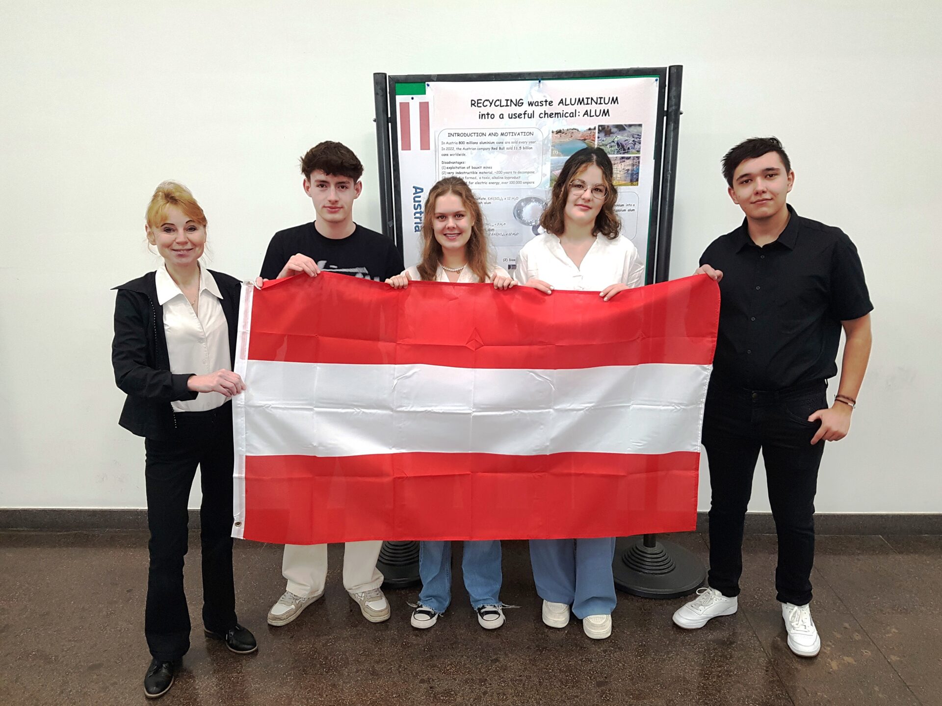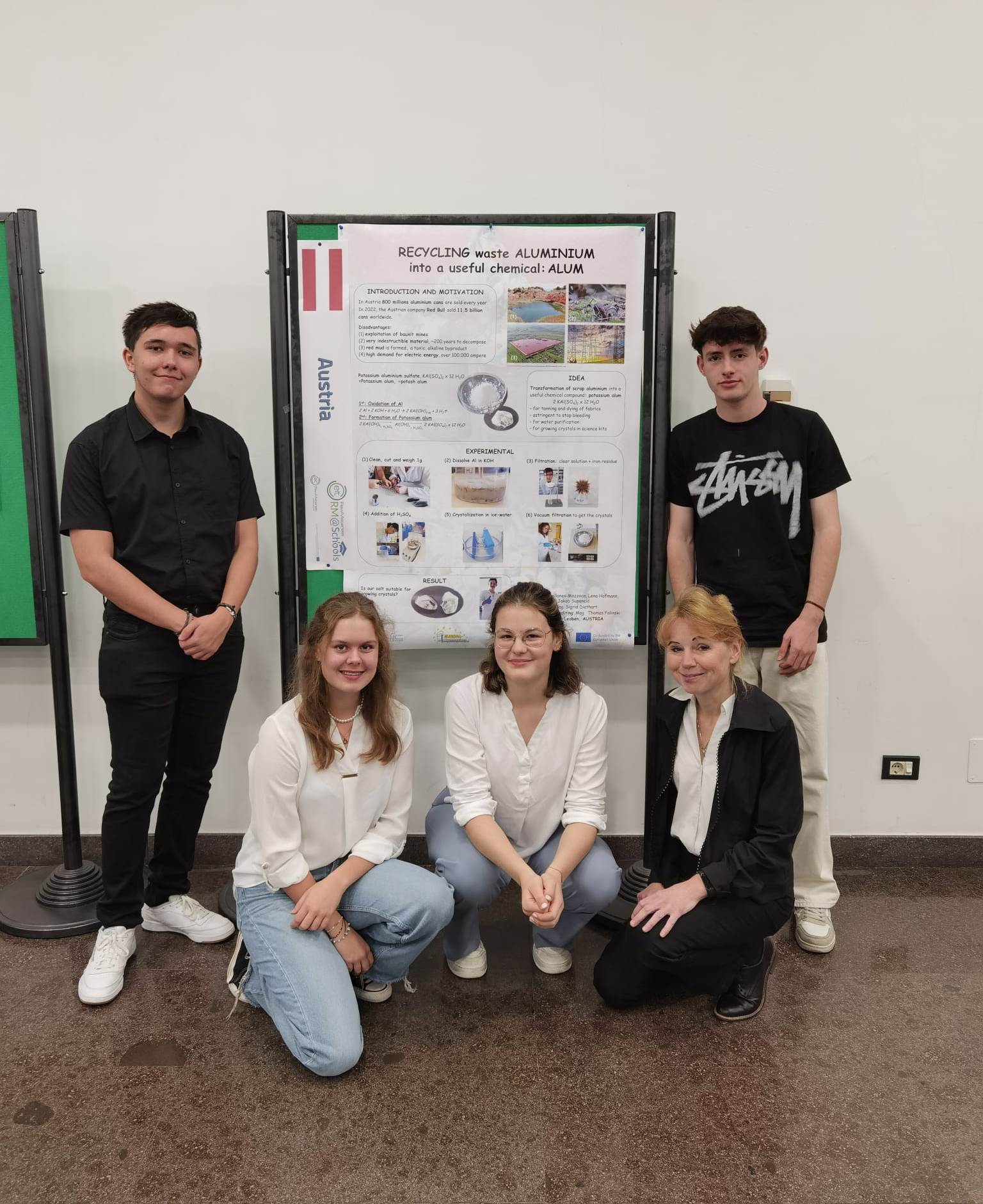 Mit dem Sieg hatten die Schüler mit ihrem auf Englisch durchgeführten Chemieprojekt „Recycling waste aluminium into a useful chemical“ aber nicht nur das Österreichfinale gewonnen, sondern gleichzeitig das Ticket zur Internationalen Rohstoff-Konferenz in Bologna erhalten.
