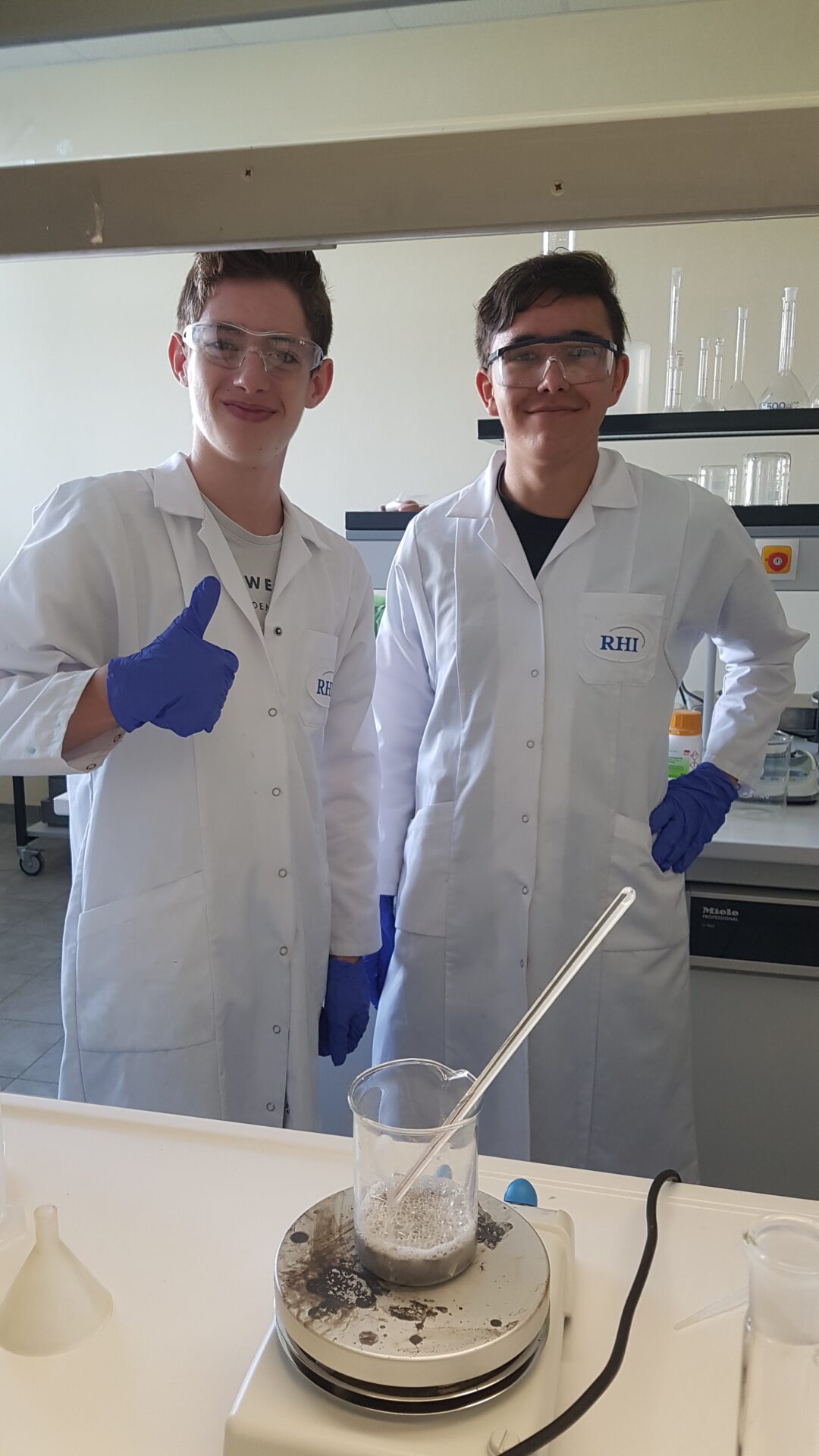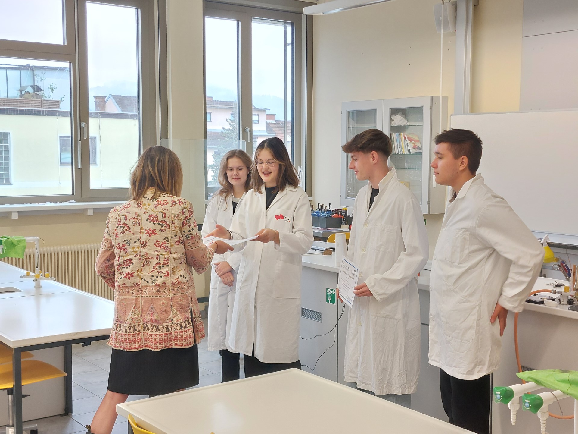 „Die Arbeit im Schullabor war auch für mich eine spannende Herausforderung“, sagt Chemielehrerin Sigrid Diethart und ergänzt schmunzelnd: „Die experimentelle Umsetzung ging weit über das Niveau und den Zeitbedarf normaler Schulversuche hinaus. Doch eigene Begeisterung, die sich wiederum auf die Schüler überträgt, macht auch scheinbar Unmögliches möglich. Besonders zu erwähnen ist auch die gute Zusammenarbeit mit Informatiklehrer Prof. Falinski, der für die Videoproduktion verantwortlich war und damit sehr zum Erfolg dieses Projekts beigetragen hat.“