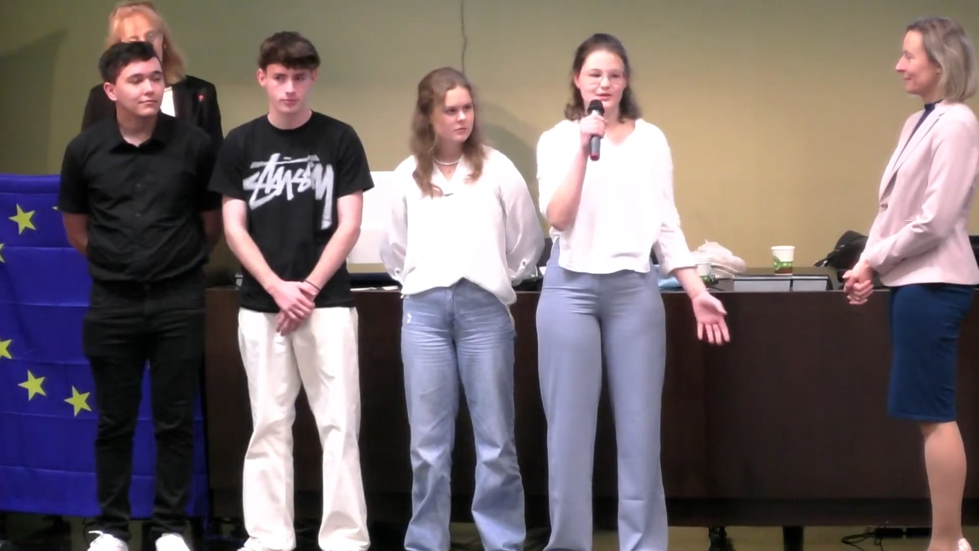 Am 26. Oktober war es dann soweit! Als Vertreter Österreichs zeigten Lena Hofmann und Mariana Magallanes-Mazzoco (7.A) sowie Yannik Hotter und Jakob Supancic (8.A) vor hunderten internationalen Zuhörern auf der Bühne ihr Projektvideo und beantworteten bravourös die Fragen der Organisatoren auf Englisch.