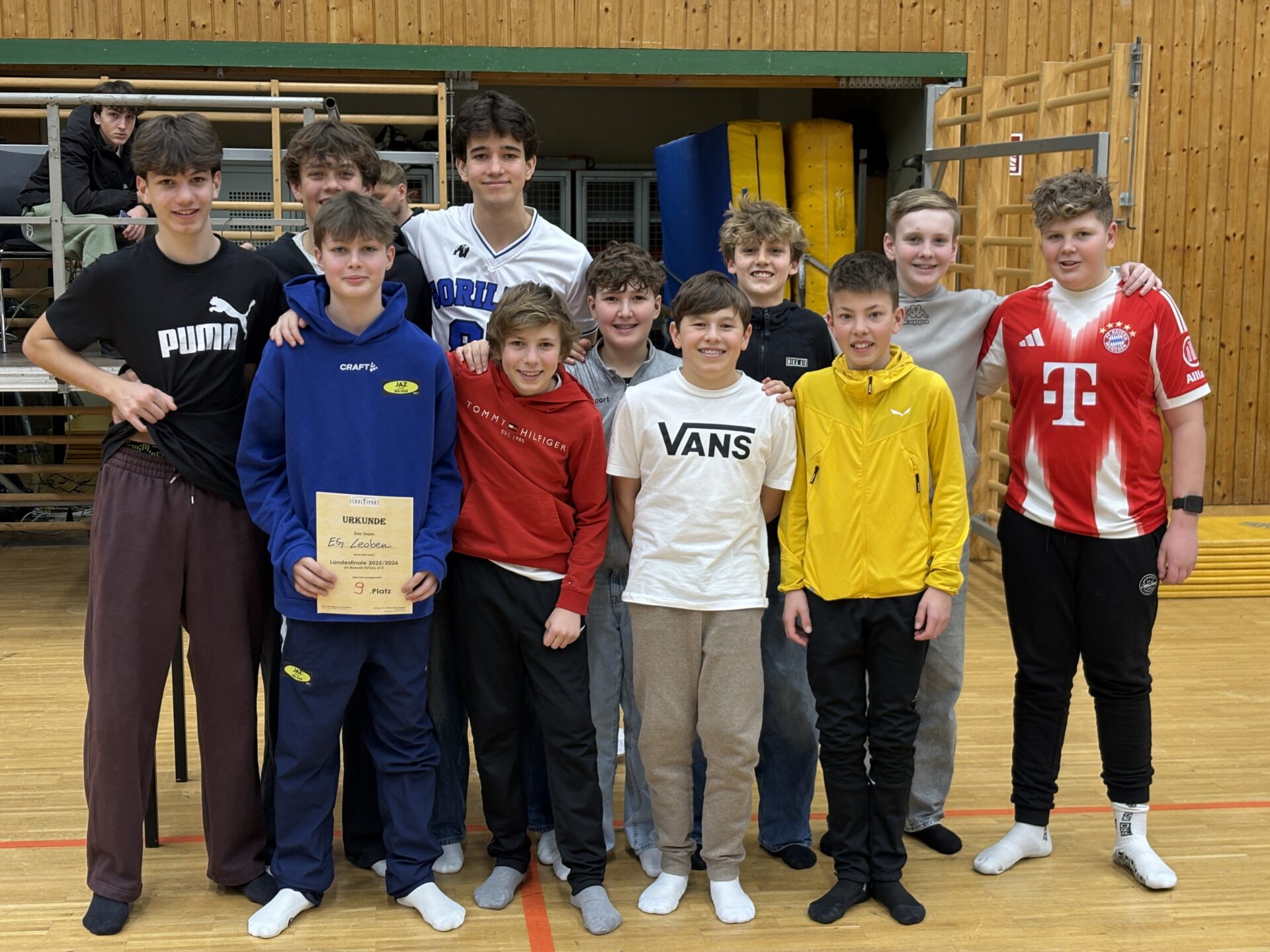 Dank der starken Leistungen bei den Bezirks- und obersteirischen Meisterschaften – jeweils als Zweitplatzierter – durfte unsere U15-Mannschaft zum zweiten Mal in Folge am Landesfinalturnier teilnehmen. In diesem Jahr ging die Reise nach Hartberg, wo sich unser Team mit den besten steirischen Schulauswahlen maß.