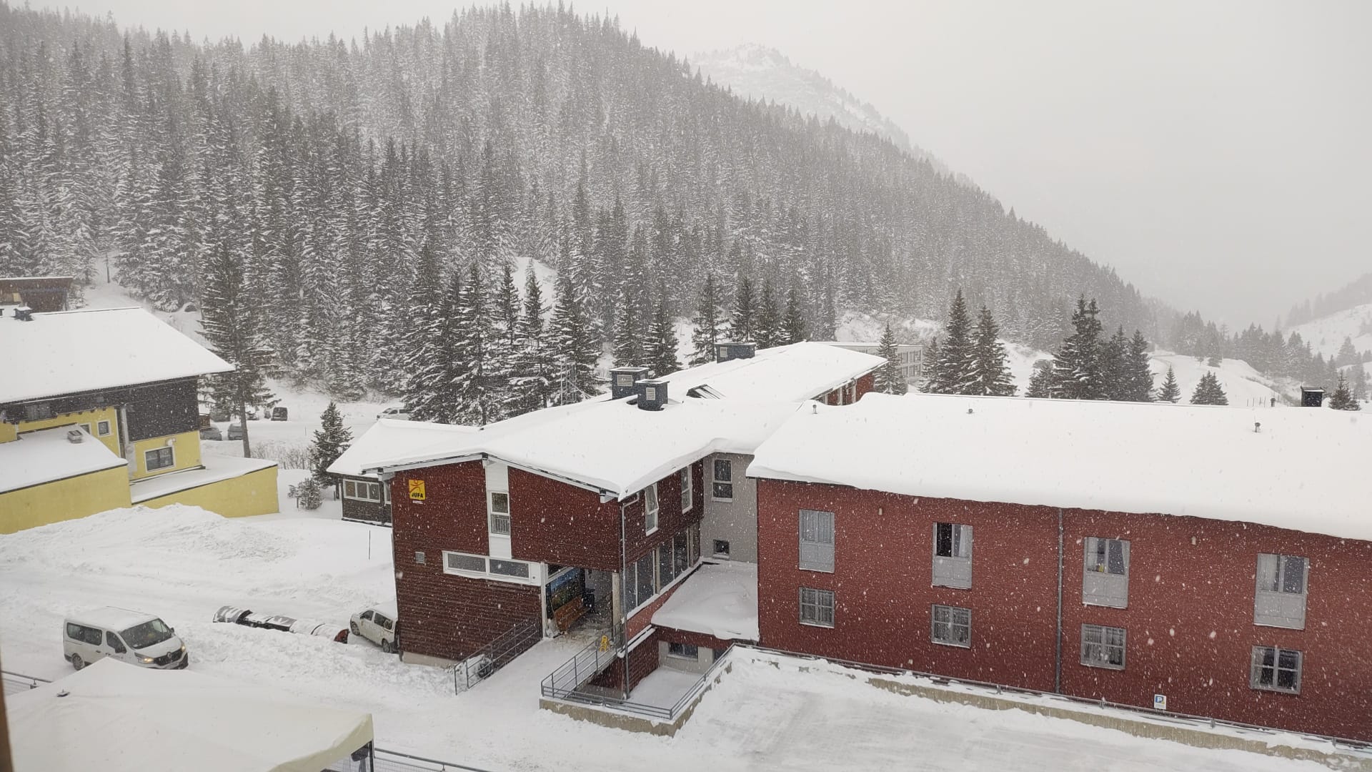 Die Busfahrt gestaltete sich sehr kurzweilig und wir hatten großen Spaß in der „Fürstenloge“ des Doppelstockbusses der Fa. Tieber. Gleich nach der Ankunft bezogen wir unsere Zimmer, und starteten in die Woche mit einem kräftigen Mittagessen. Danach ging es gleich auf die Piste. Wir erkundeten das Schigebiet und waren begeistert! Die Pisten waren in hervorragendem Zustand, obwohl es bis am späten Nachmittag immer wieder schneite. Der Neuschnee machte das Befahren der Pisten so richtig angenehm. Unsere Professoren trieben uns bereits am ersten Tag zu skifahrerischen Höchstleistungen, sodass wir nach dem Abendessen und dem darauf folgenden Vortrag über Skisicherheit, todmüde ins Bett sanken. Um 22:00 Uhr waren wohl die meisten von uns schon im „Träumeland“.